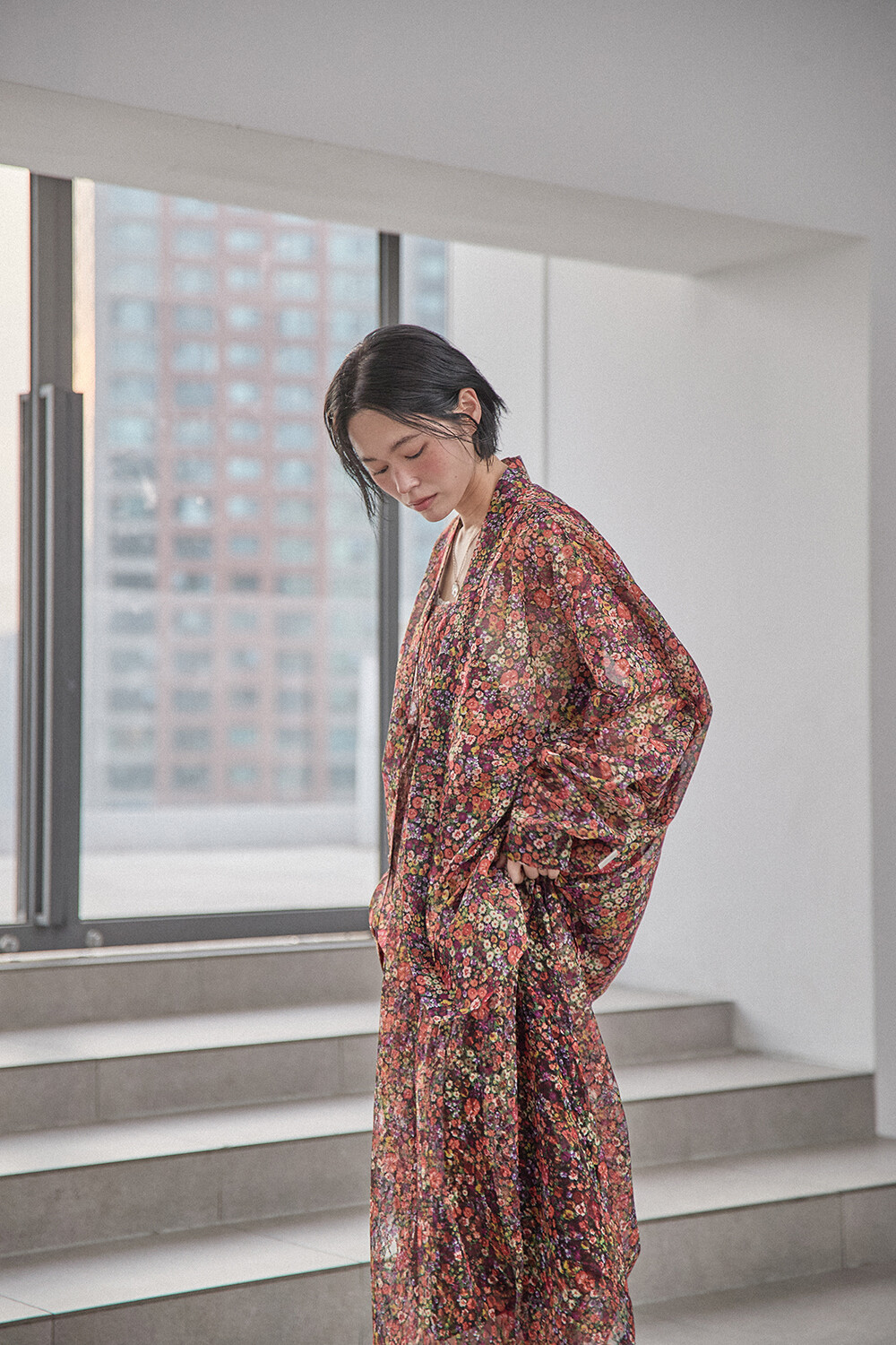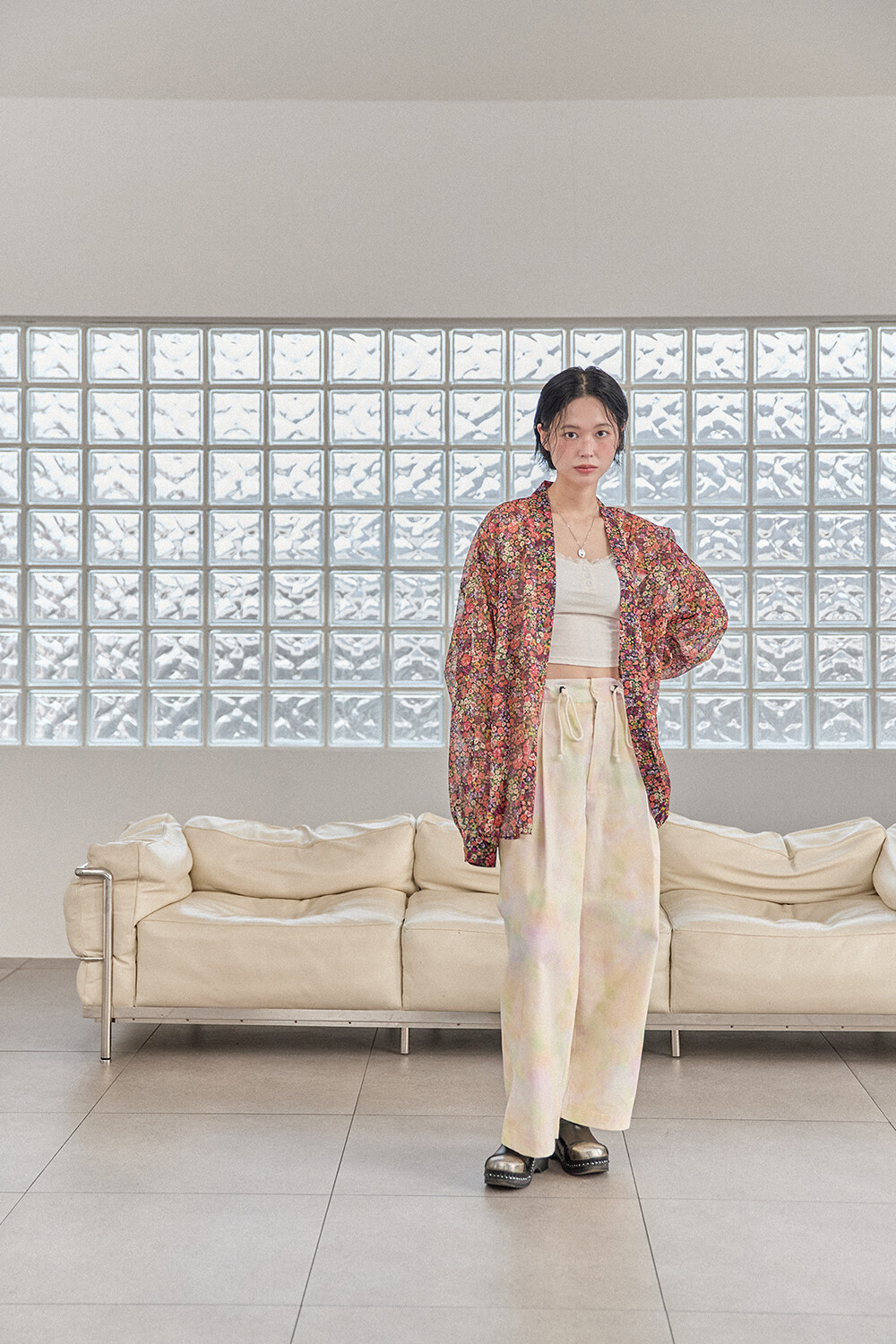 FLOWER SHEER NO COLLAR SHIRT-MT.OR