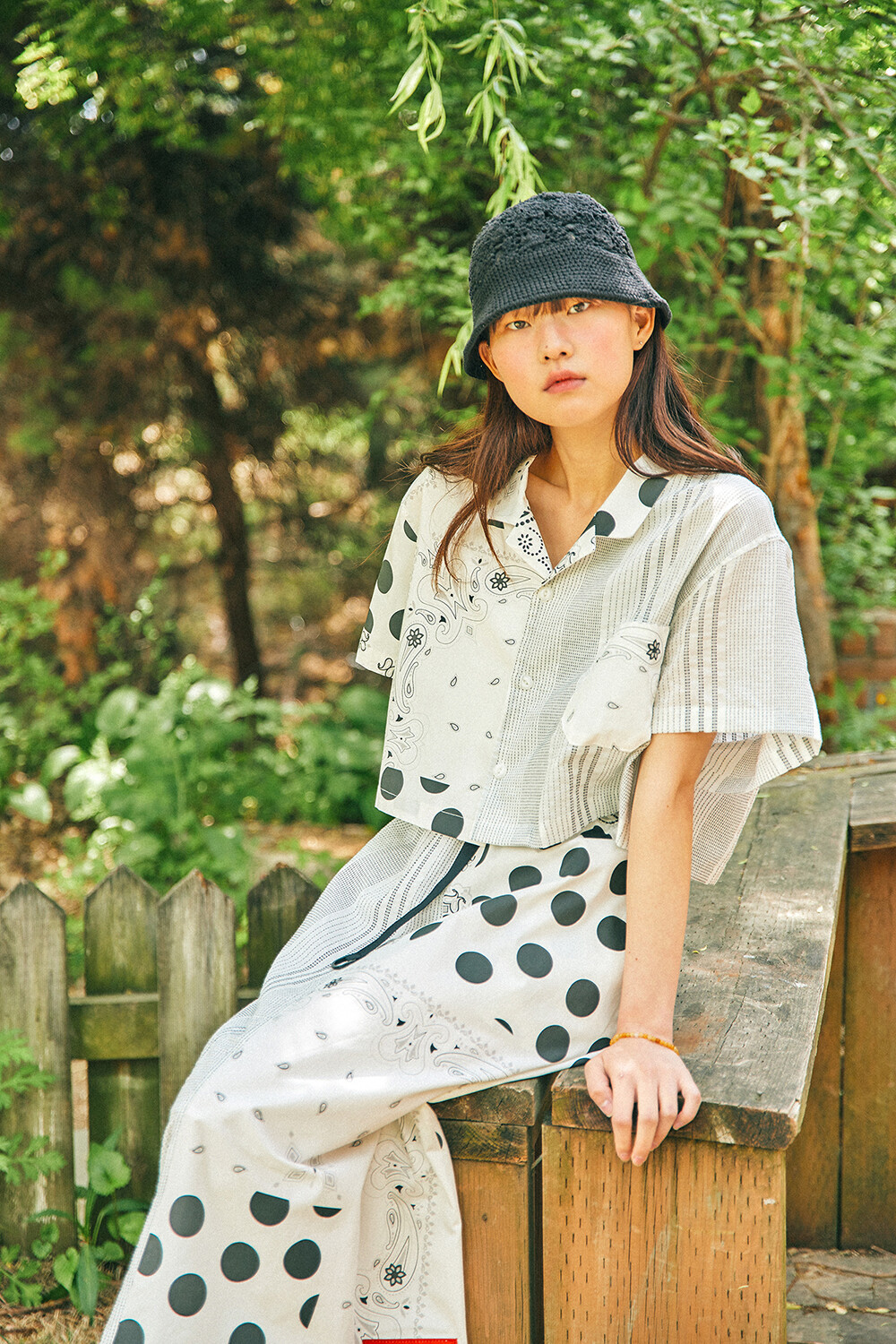 GORT® LookBook *W OPEN COLLAR PATCHWORK SHORT SHIRT-WH