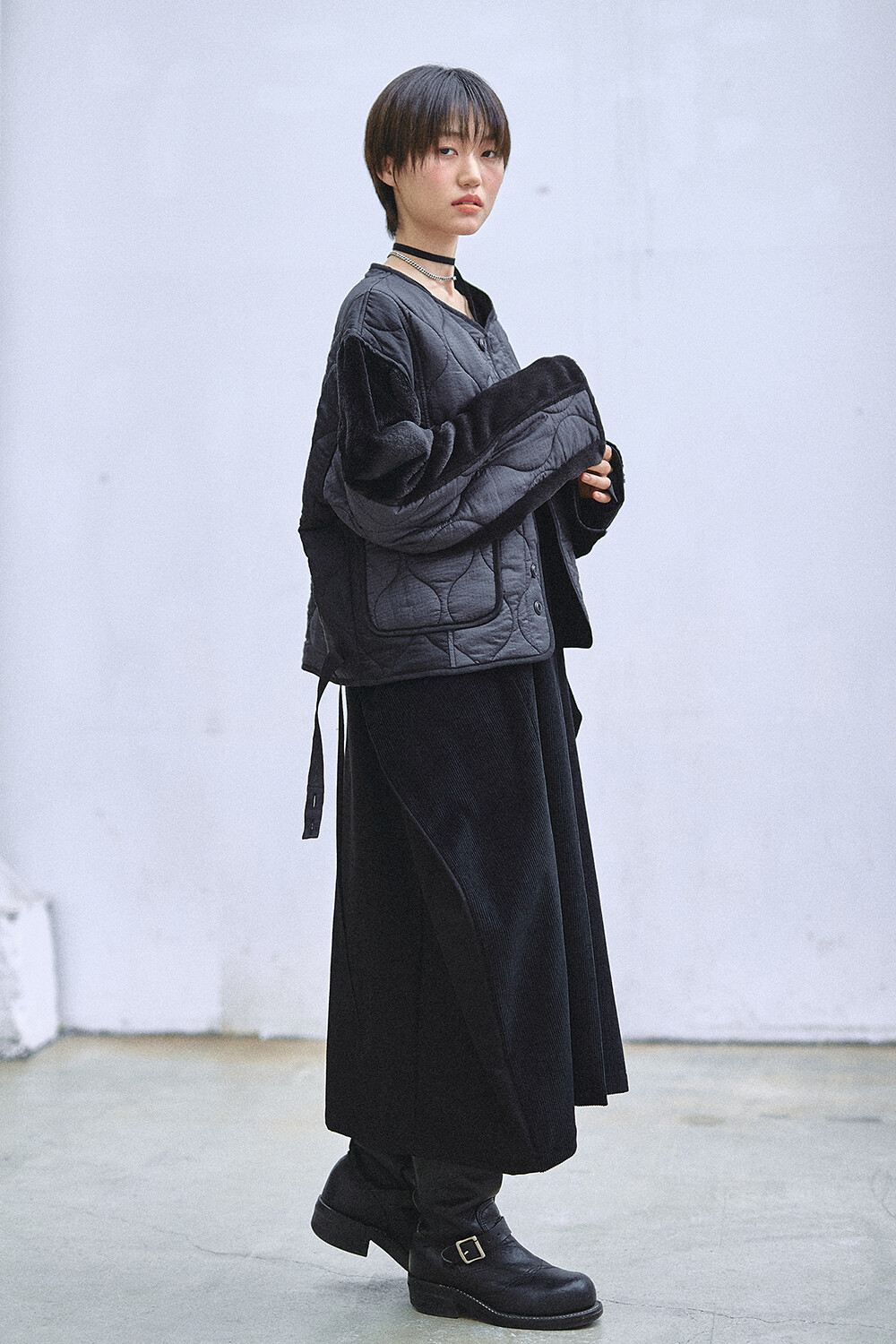GORT® "Black;" Collection. *PADDING SHORT LINER JACKET A type-BK