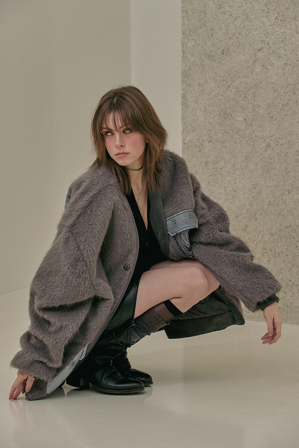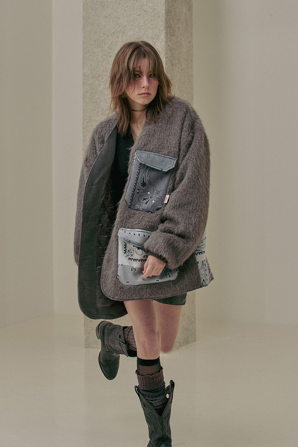 • DESCRIPTION: -INSPIRED BY EUROPEAN VINTAGE MILITARY LINER JACKET -FAUX MOHAIR & QUILTED LINING -UNISEX STYLE • MATERIALS: OUT1: POLYESTER 100% OUT2: POLYESTER 100% LINING1: COTTON 100% LINING2: POLYESTER 100% HAS FILLING POLYESTER • COLOR: GREY *사진은 실제 제품 색상과 약간의 차이가 있을 수 있습니다.