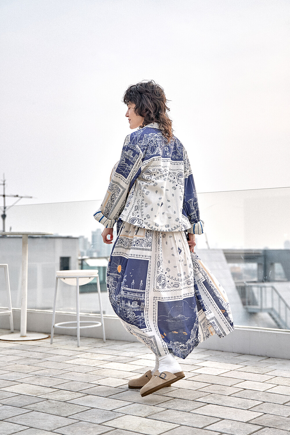 GORT® 'City Flower Garden' Collection. *BANDANA COTTON WORK SHORT JACKET-D.BL