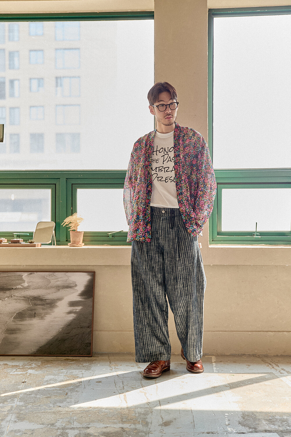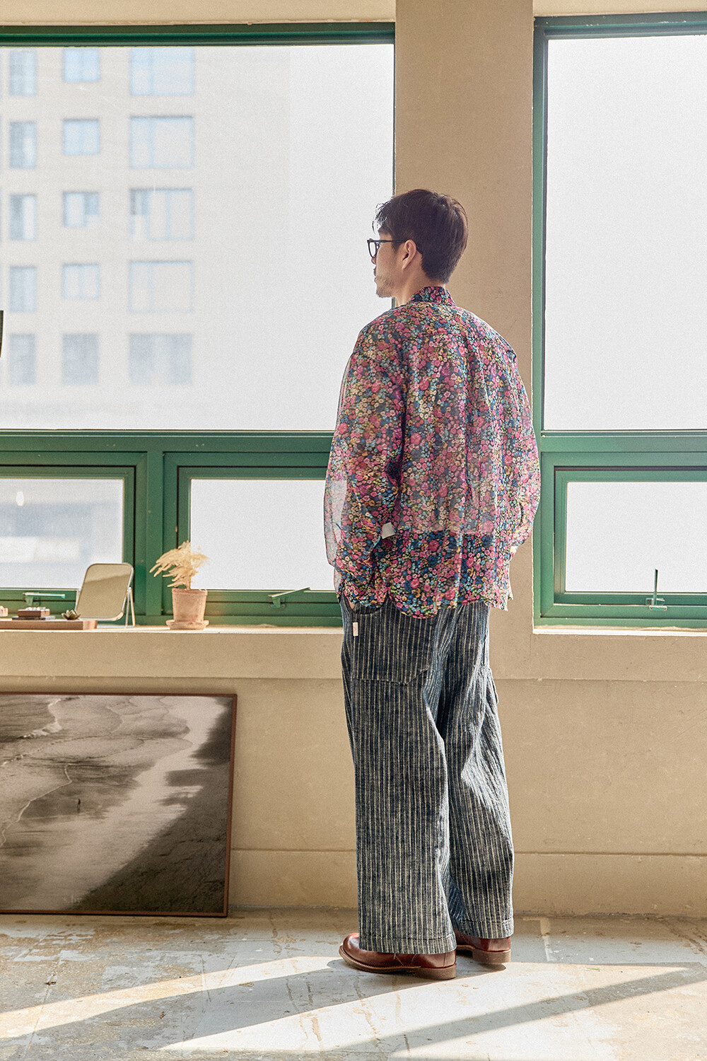 FLOWER SHEER NO COLLAR SHIRT-MT.PK