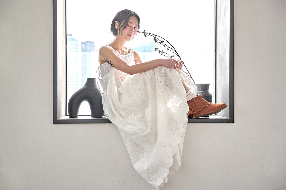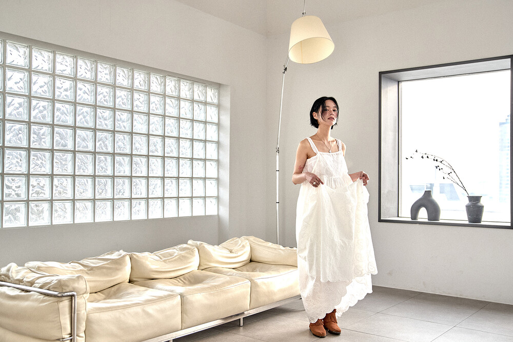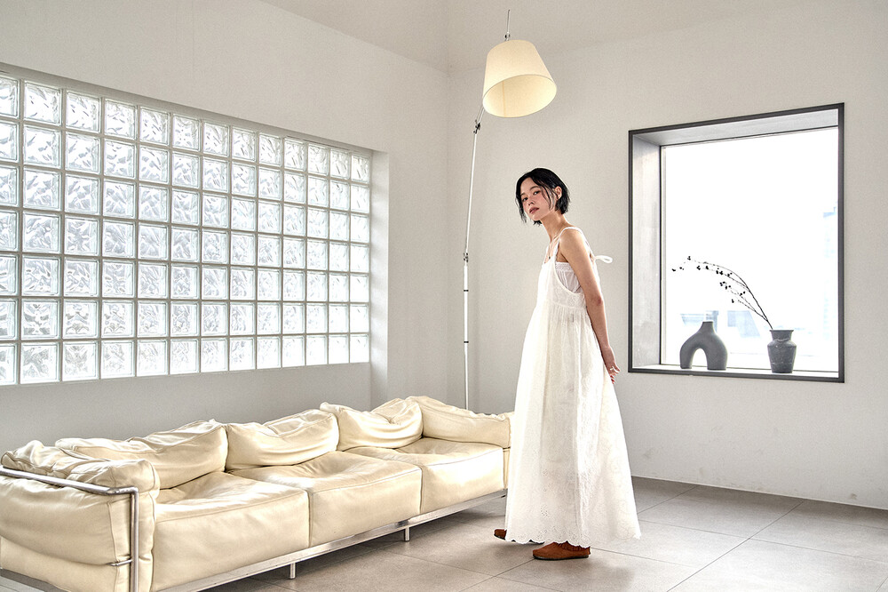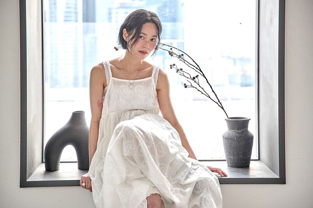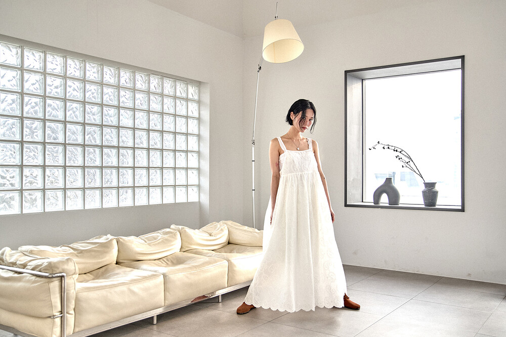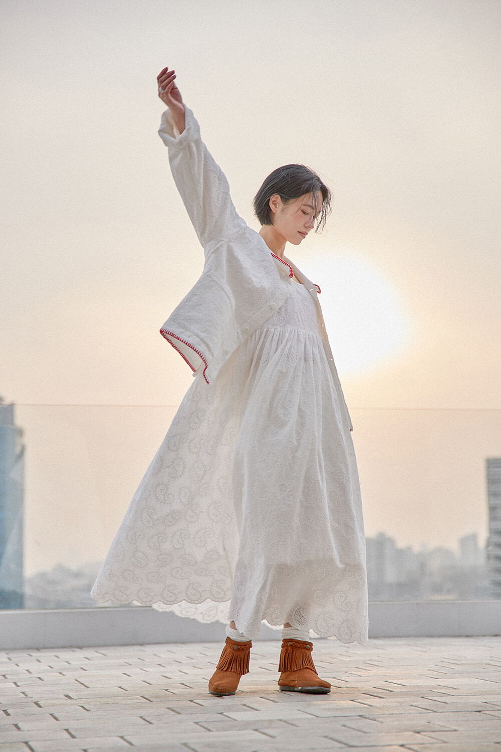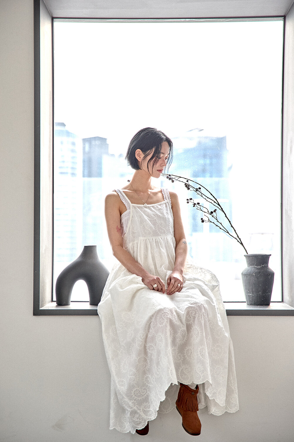 GORT® 2025 Spring/Summer 'City Flower Garden' Collection. *PAISLEY LACE CAMI LONG DRESS-WH