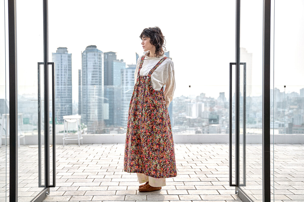 • BRAND: GORT®(고트) • PRODUCT NAME: FLOWER CORDUROY OVERALL SKIRT-MT.OR • CODE: G71204_MT.OR *MADE IN KOREA