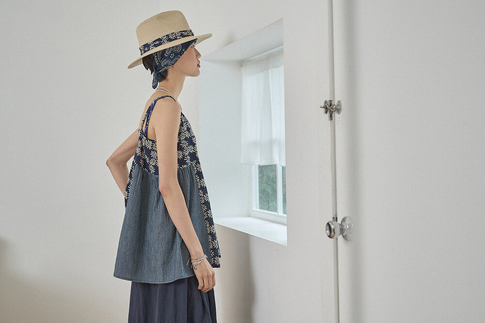 • DESCRIPTION: -ADJUSTABLE STRAP -FOR WOMEN / ONE SIZE FITS ALL • MATERIALS: OUT1: RAYON 65%, COTTON 35% OUT2: COTTON 100% OUT3: COTTON 100% • COLOR: NAVY *사진은 실제 제품 색상과 약간의 차이가 있을 수 있습니다.