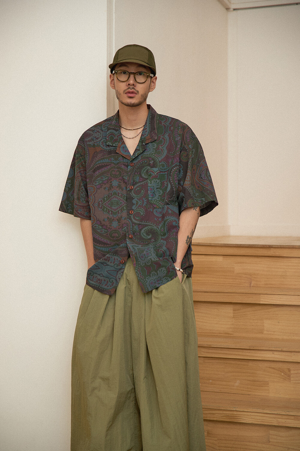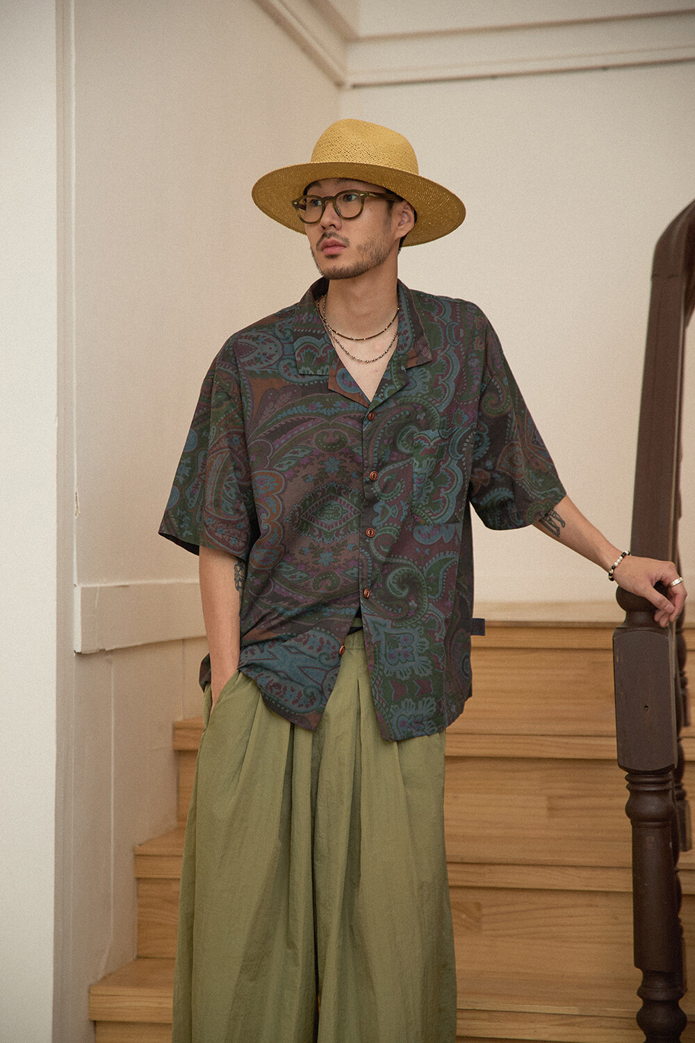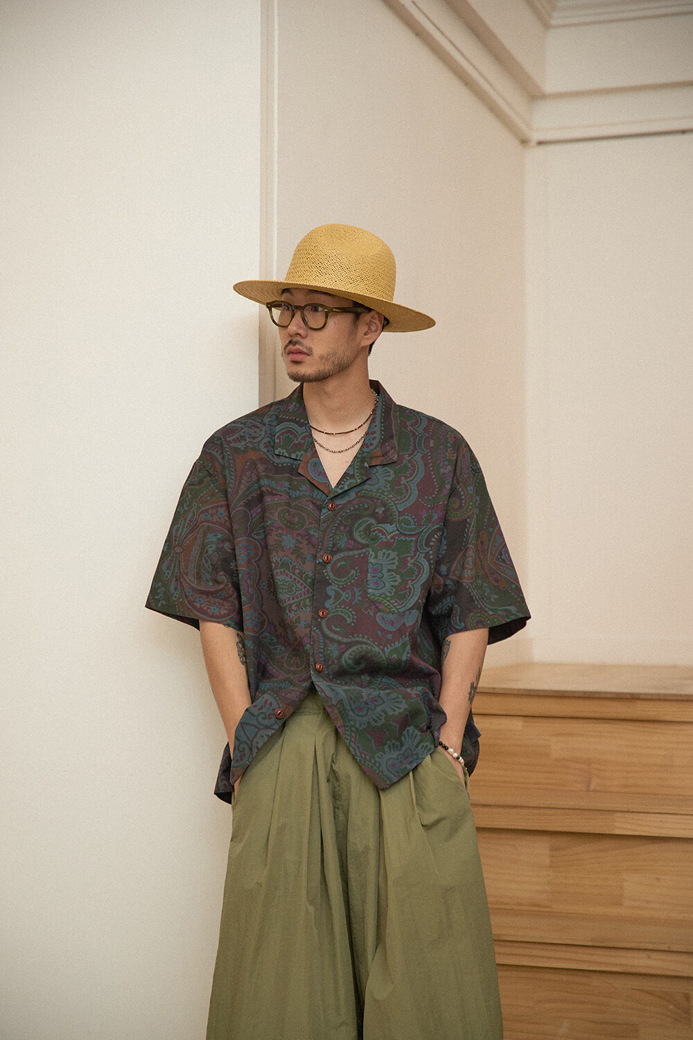 DETAILS *80S COTTON PAISLEY HAWAIIAN SHIRTS-GN.NV