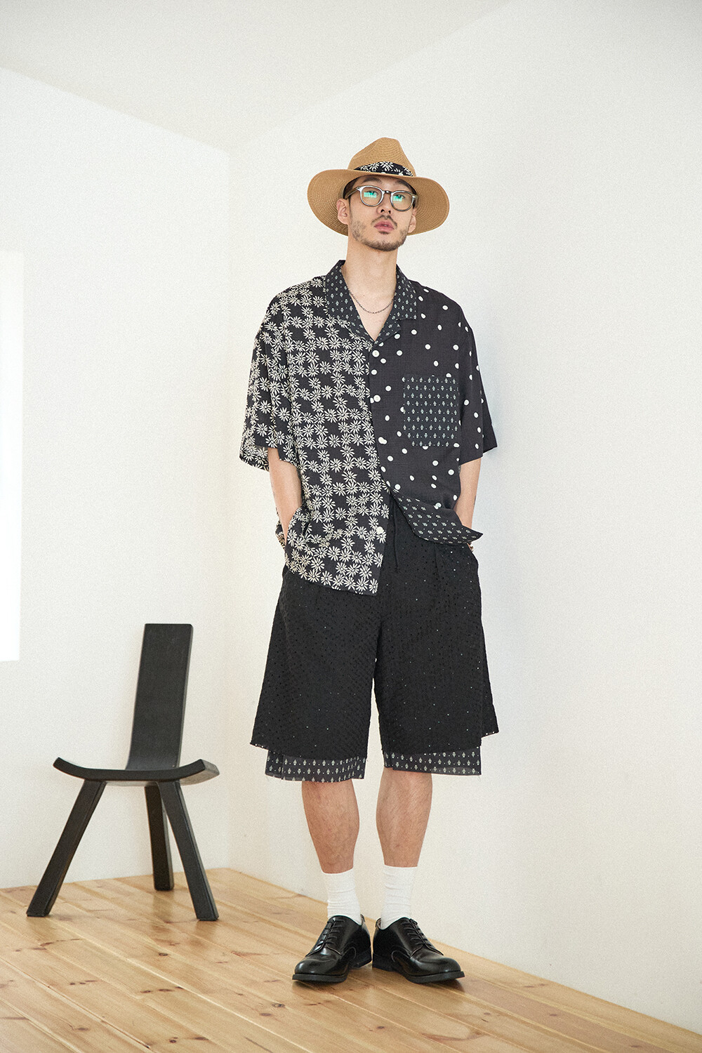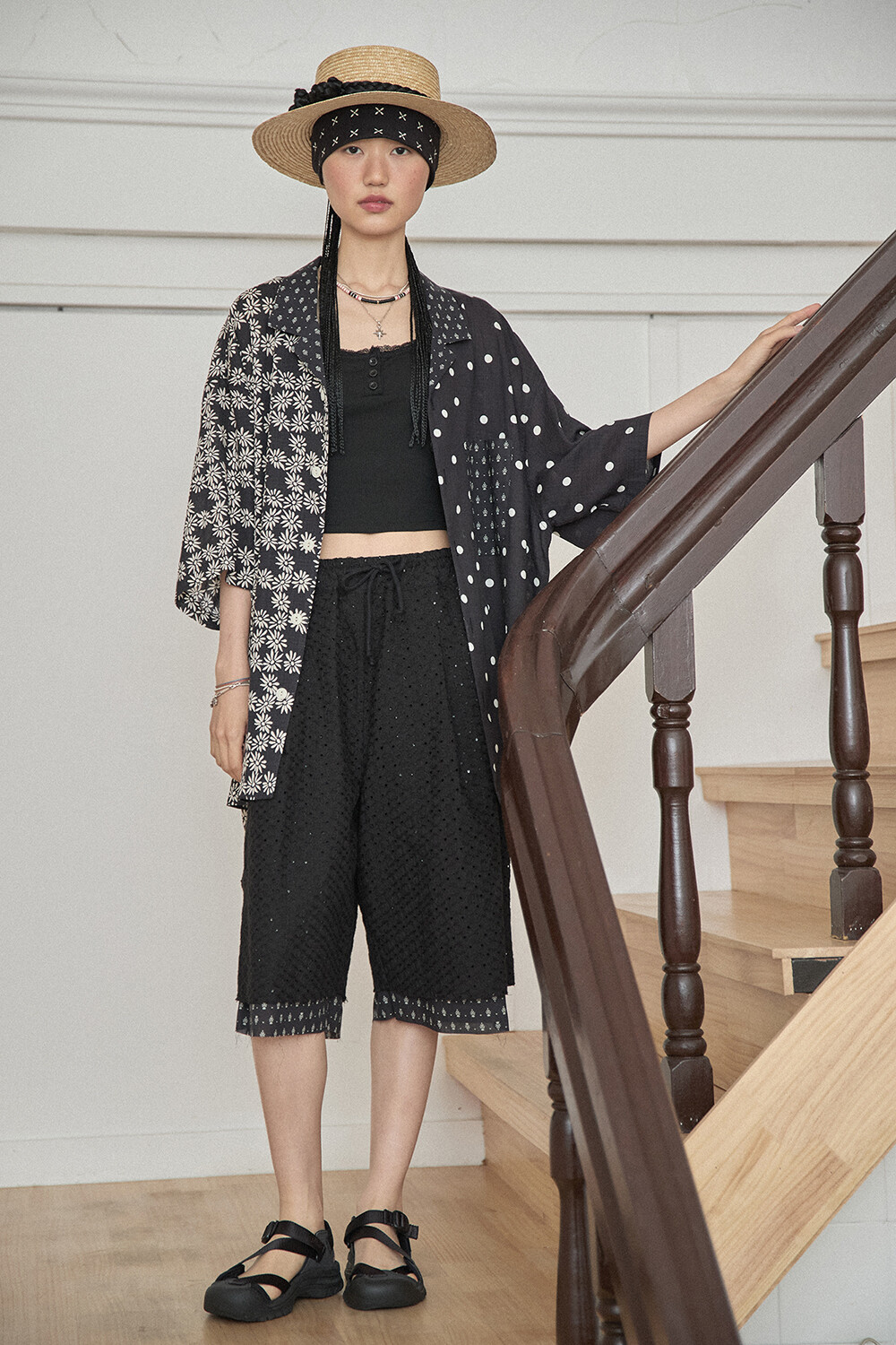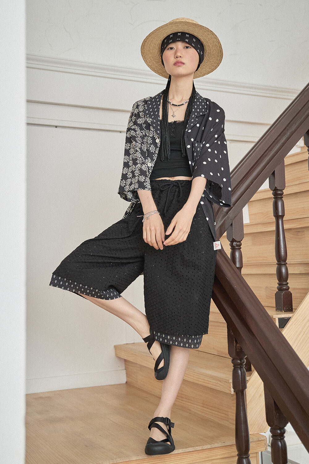 • PRODUCT NAME: LACE LONG WIDE SUMMER SHORTS-BK