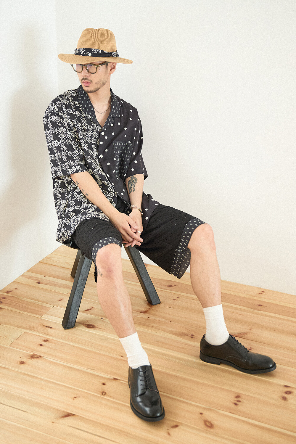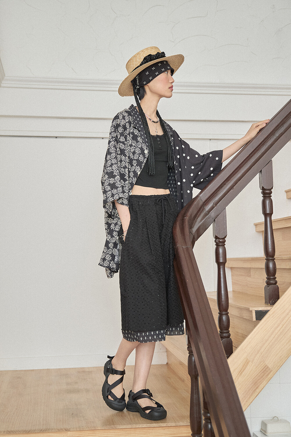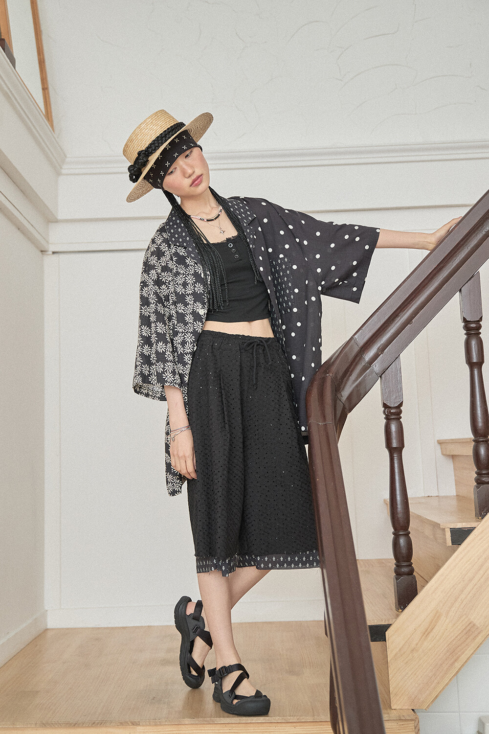 • PRODUCT NAME: LACE LONG WIDE SUMMER SHORTS-BK