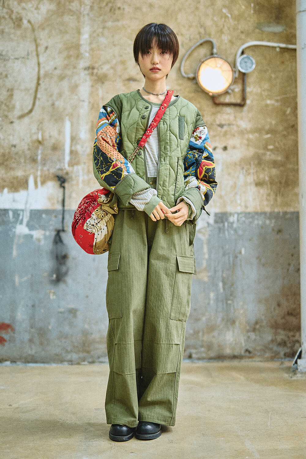 *본 제품은 패치워크 그래픽 패턴(스카프 부분)의 원단을 재단하여 제작하는 작업의 특성상