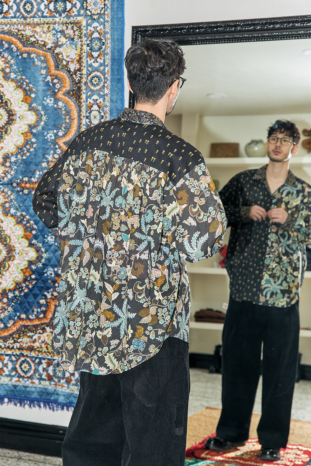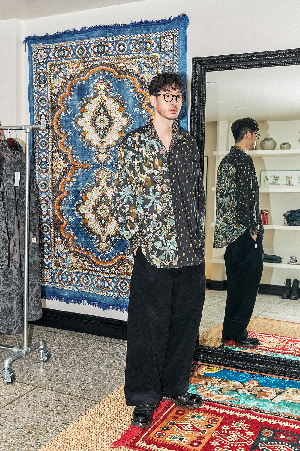 • BRAND: GORT®(고트) • PRODUCT NAME: PATCHWORK OPEN COLLAR SHIRT-MT.BK • CODE: G73202B_MT.BK *MADE IN KOREA