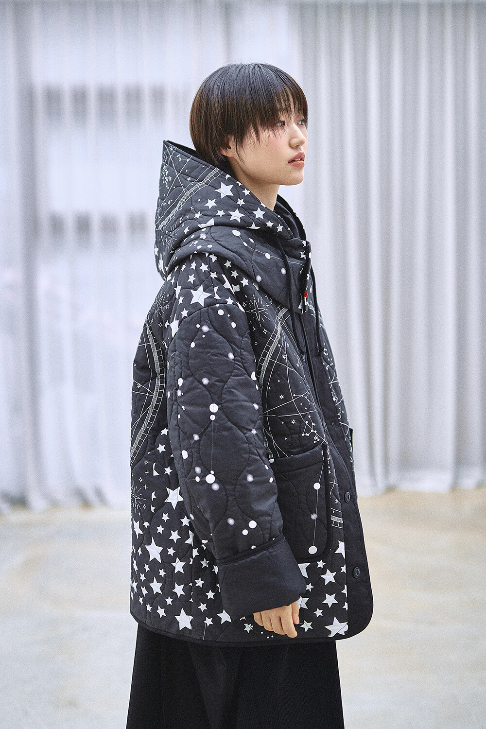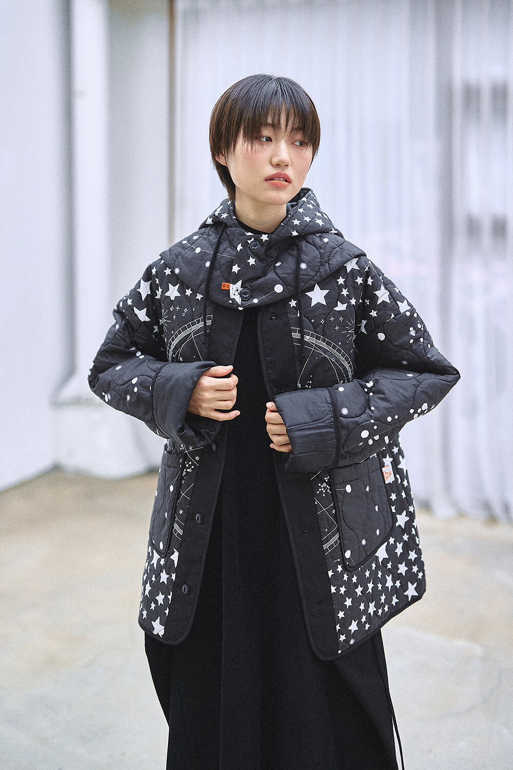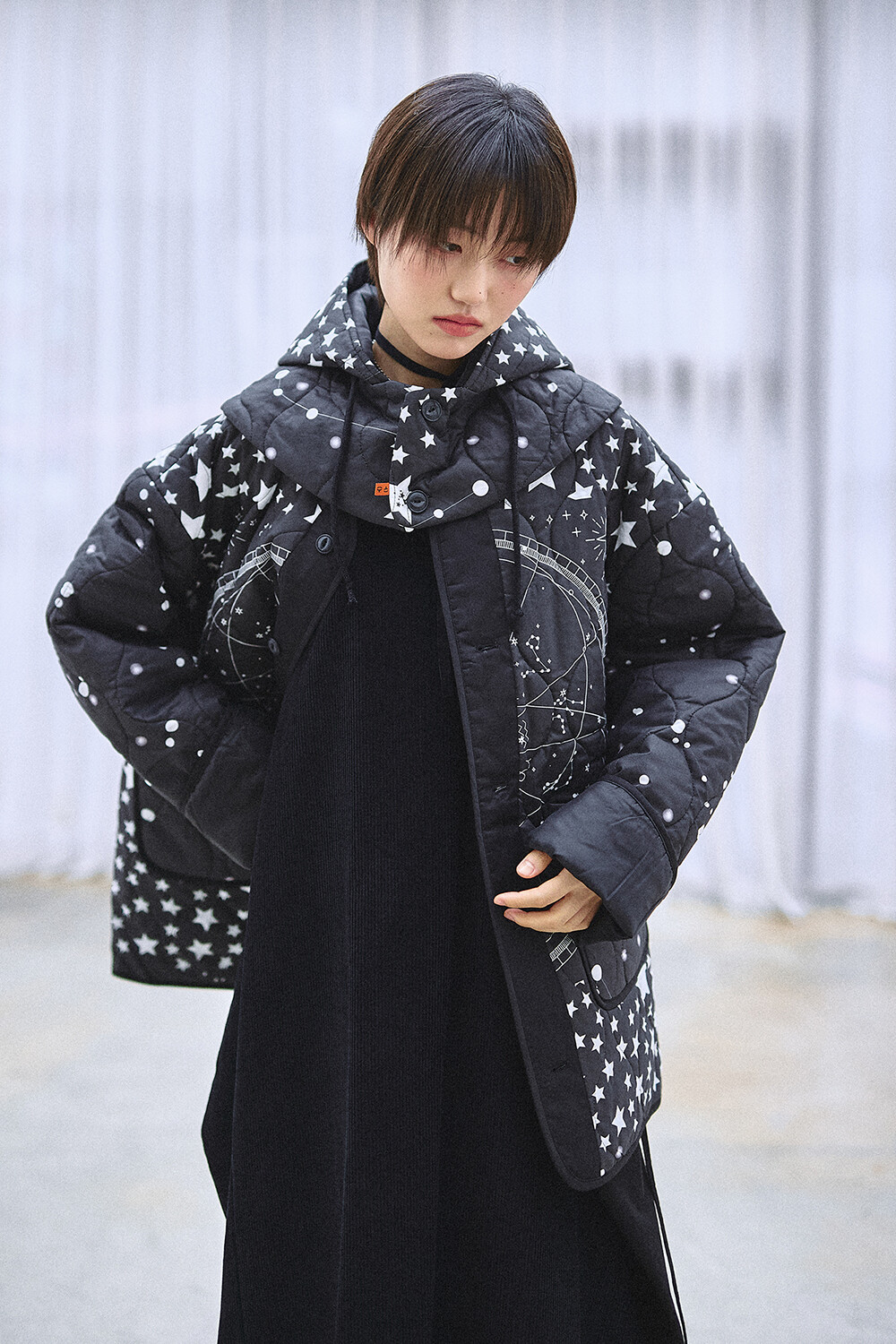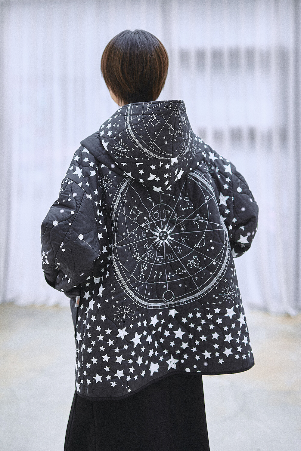 GORT® 'Flickering Constellations' Collection. *CONSTELLATIONS PADDING HOODIE-BK