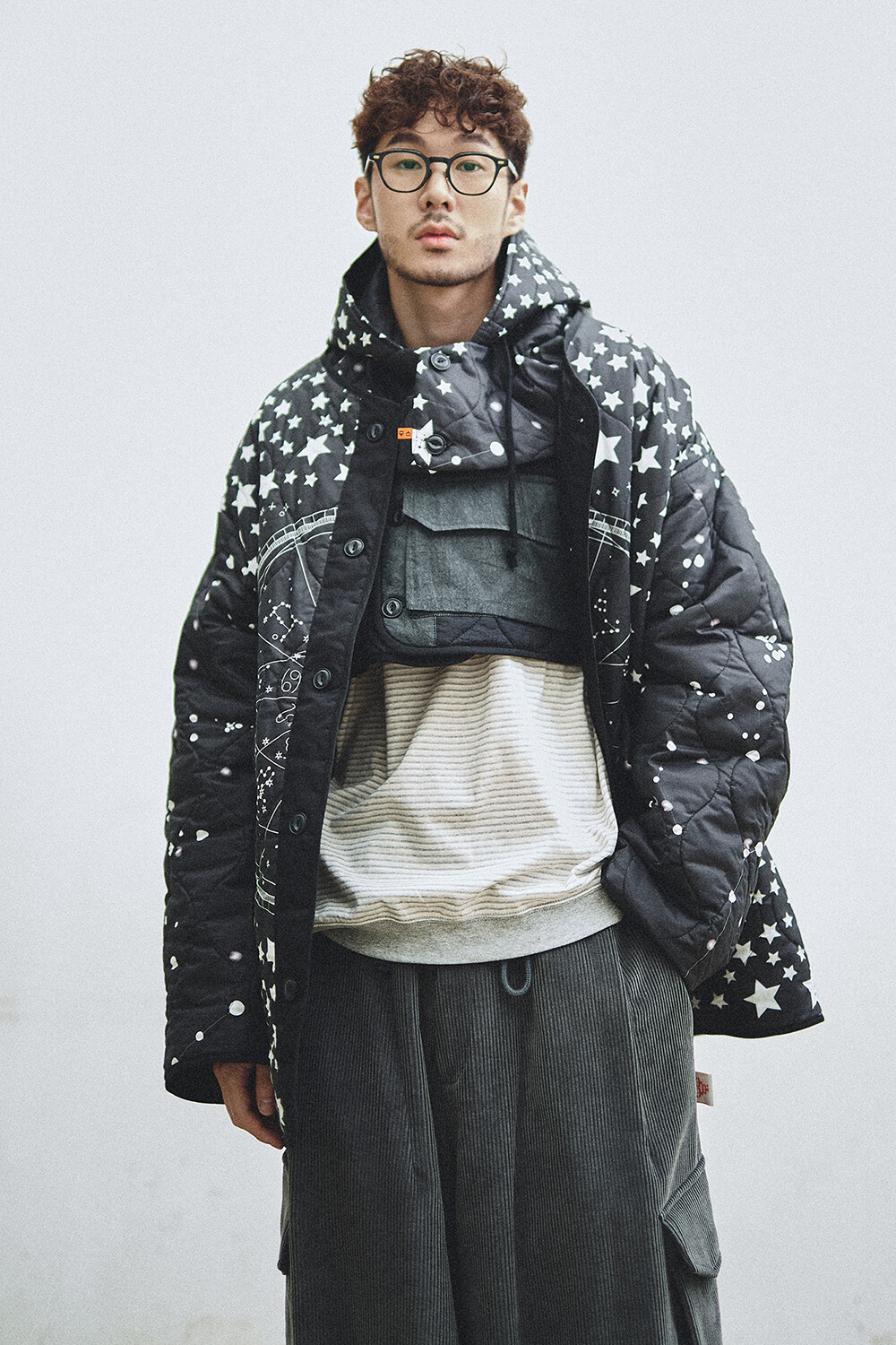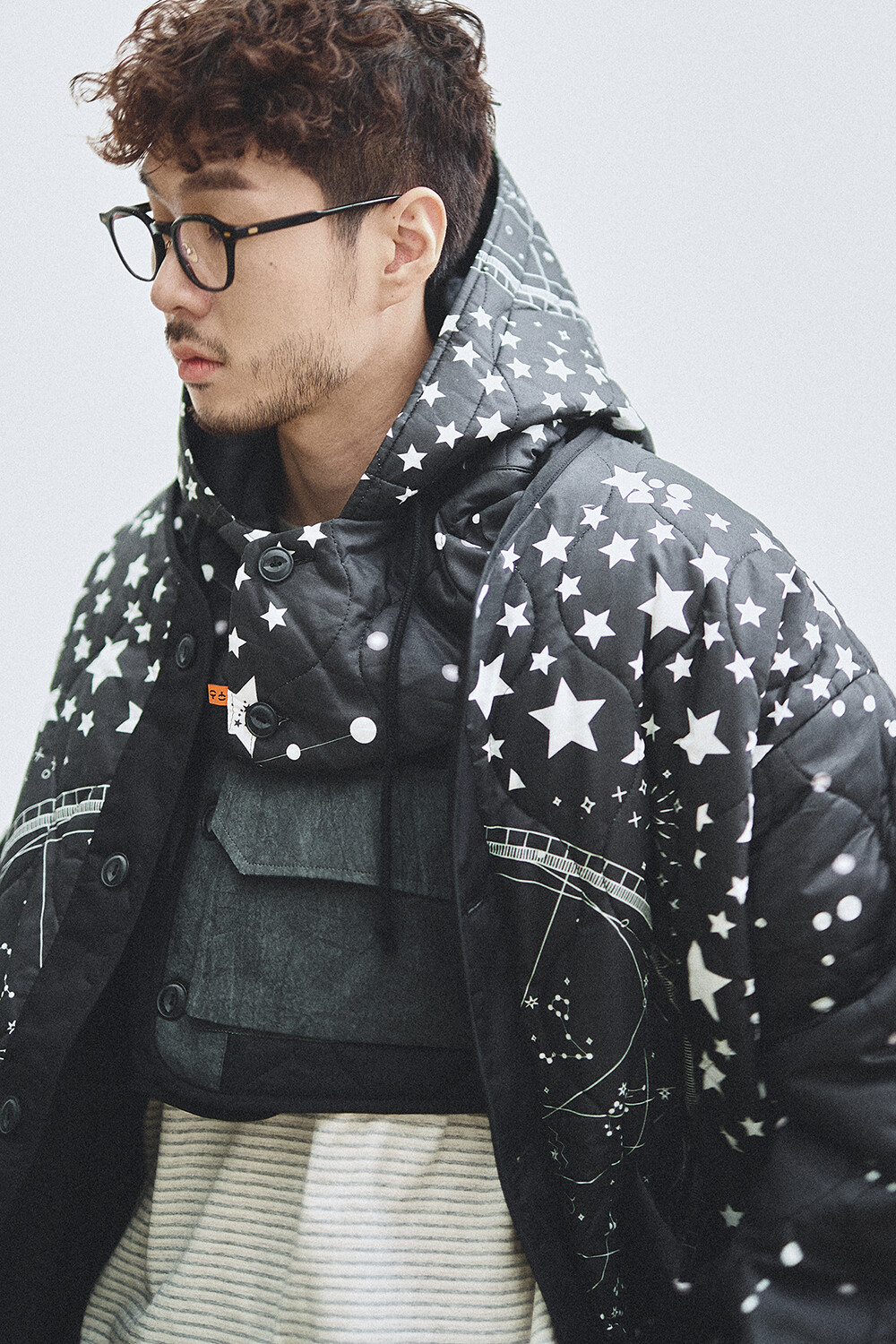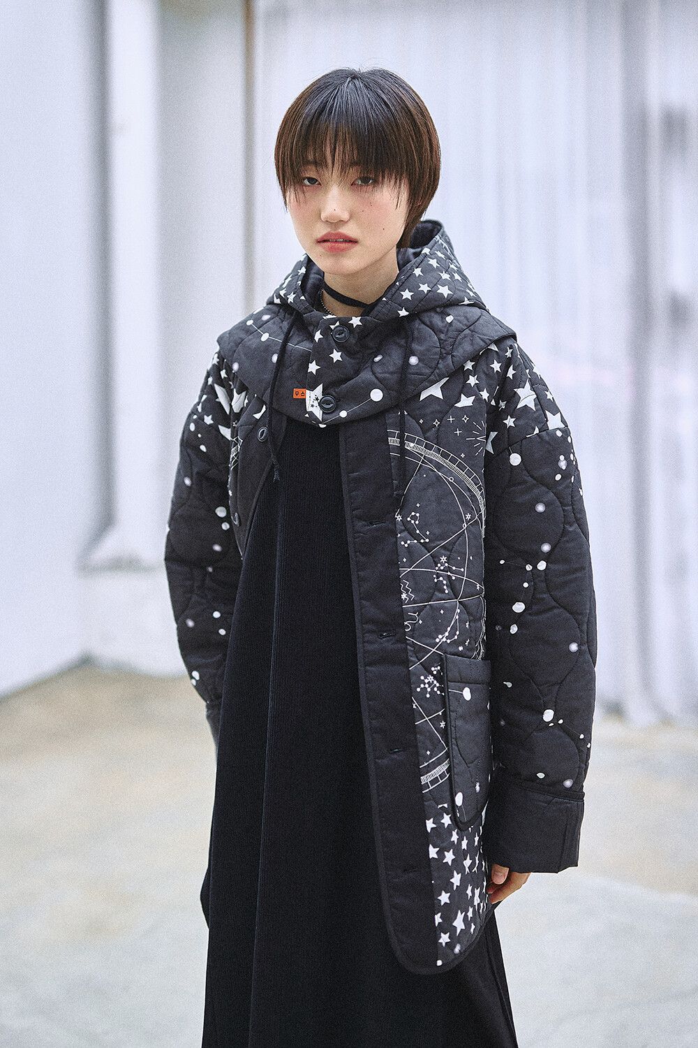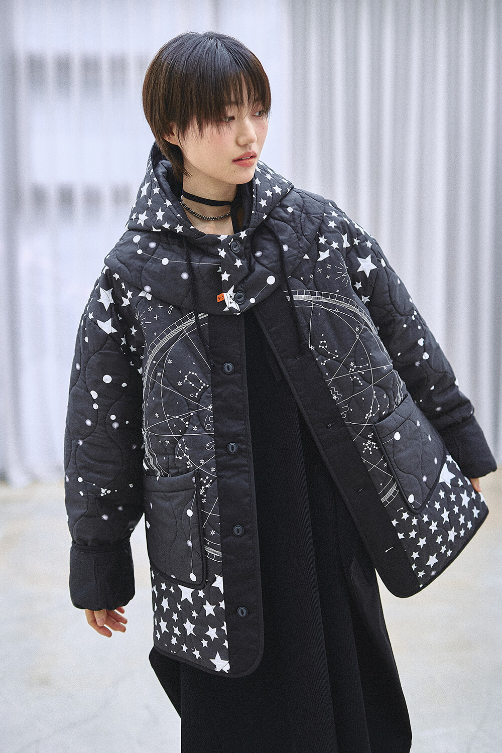 GORT® 'Flickering Constellations' Collection. *CONSTELLATIONS PADDING HOODIE-BK