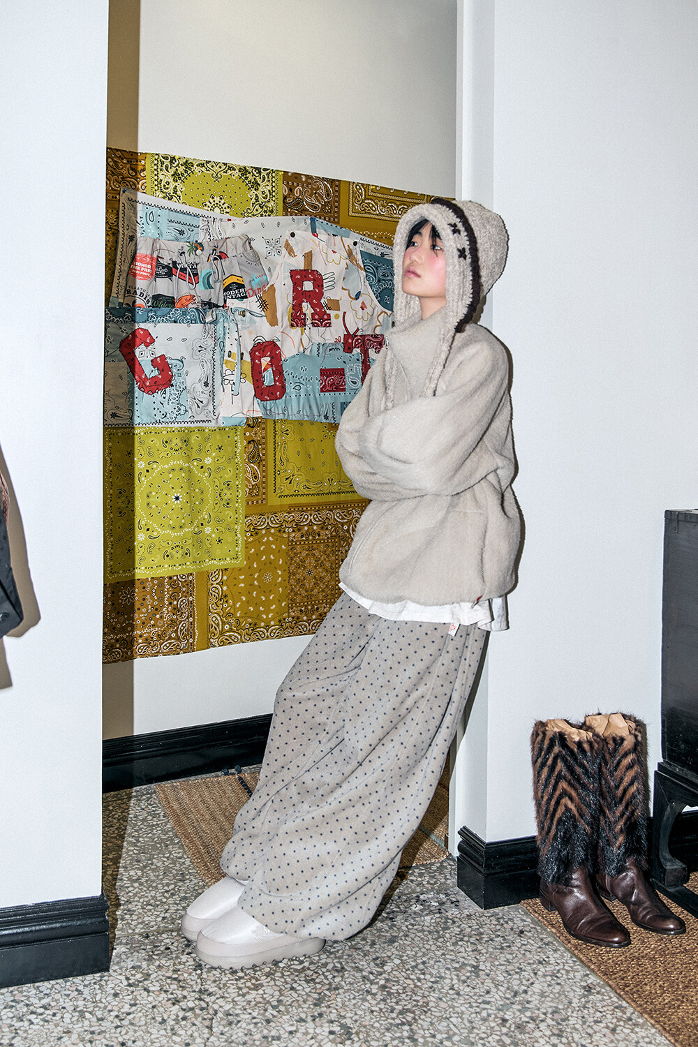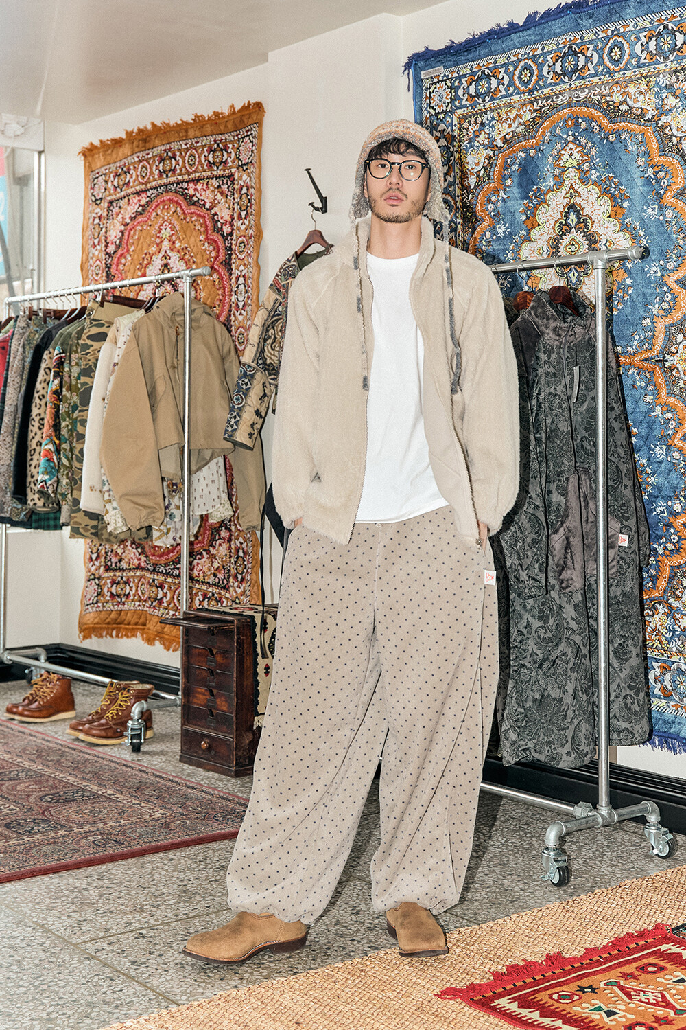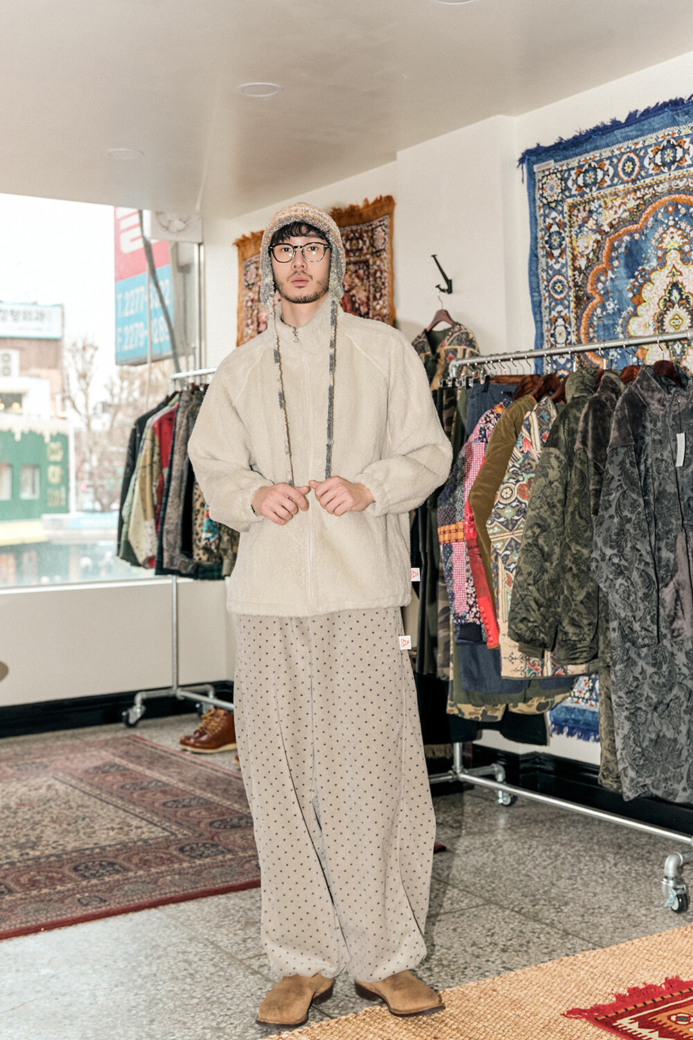 • DESCRIPTION: -UNISEX STYLE • MATERIALS: OUT(BONDED FABRIC) FRONT: POLYESTER 75%, SPAN 25% BACK: POLYESTER 100% • COLOR: BEIGE *사진은 실제 제품 색상과 약간의 차이가 있을 수 있습니다.