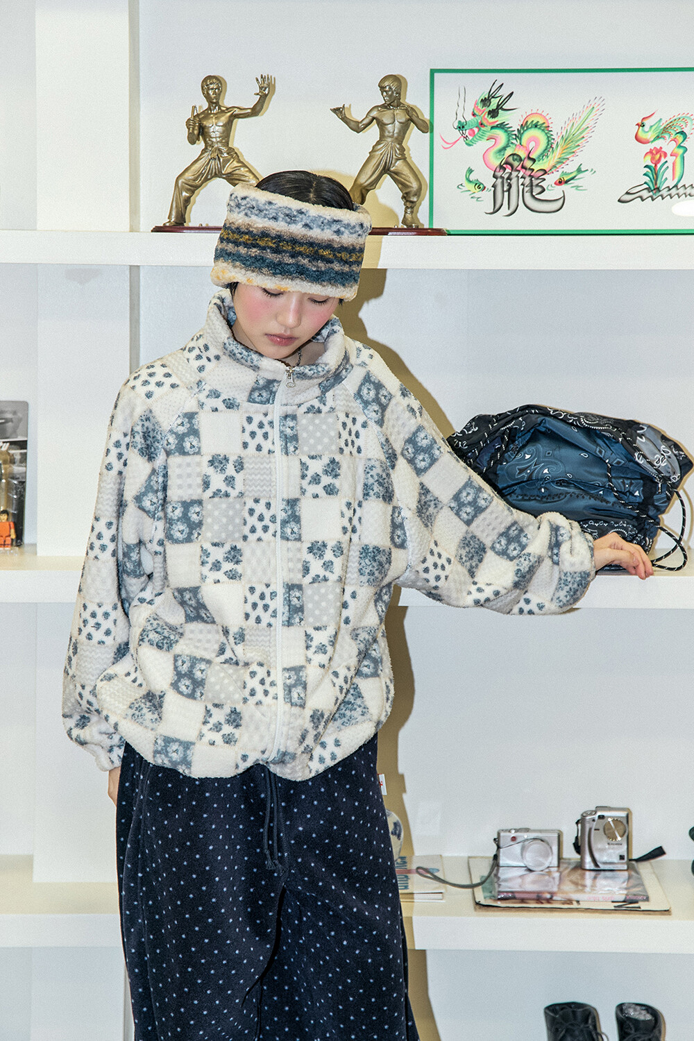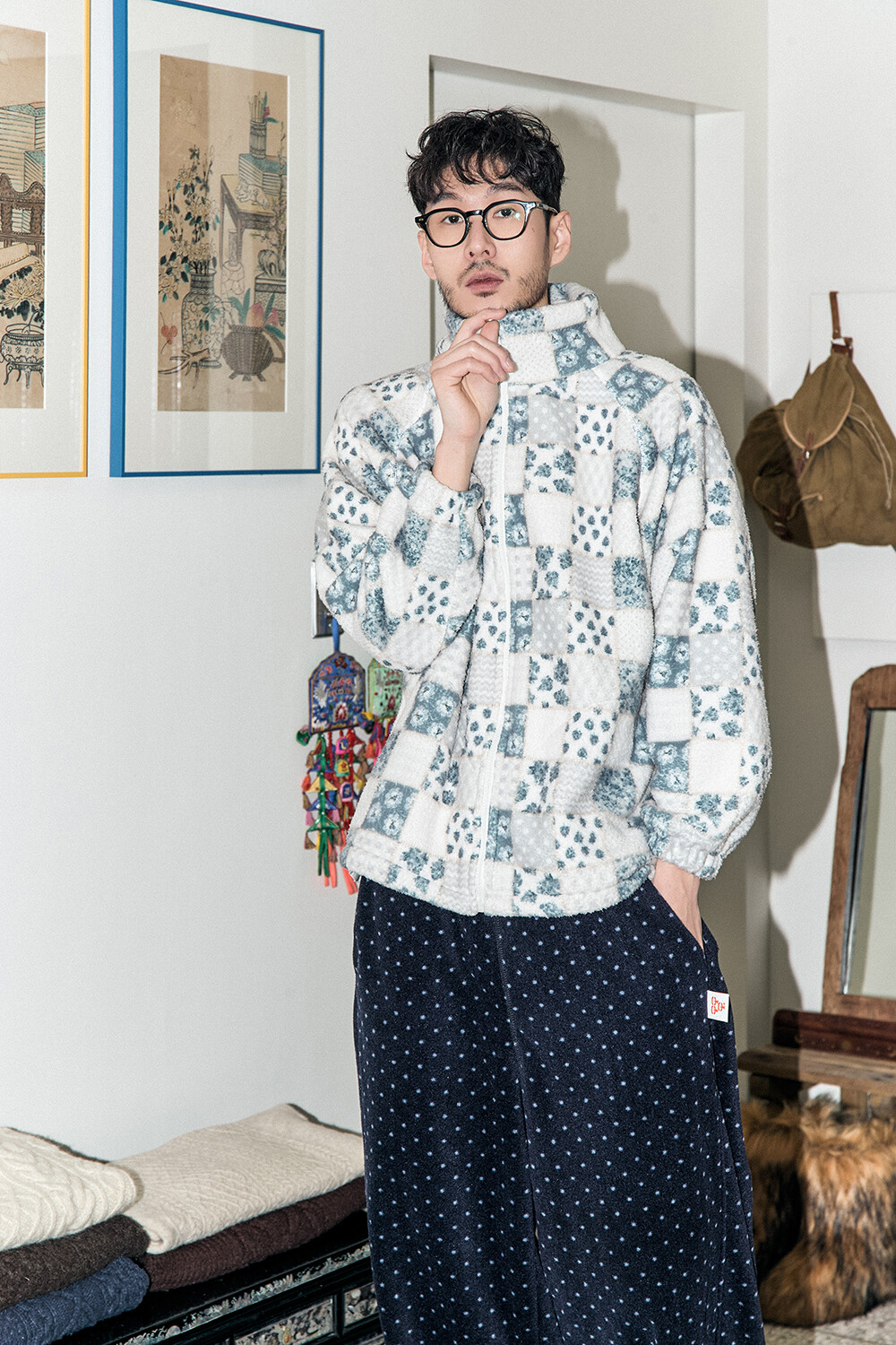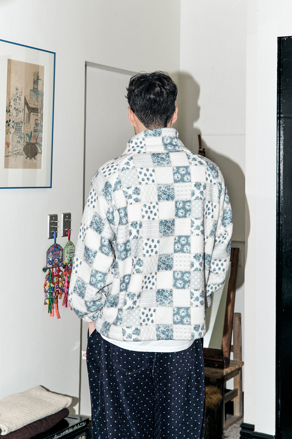 DETAILS *PATTERN FLEECE ZIP-UP-BL