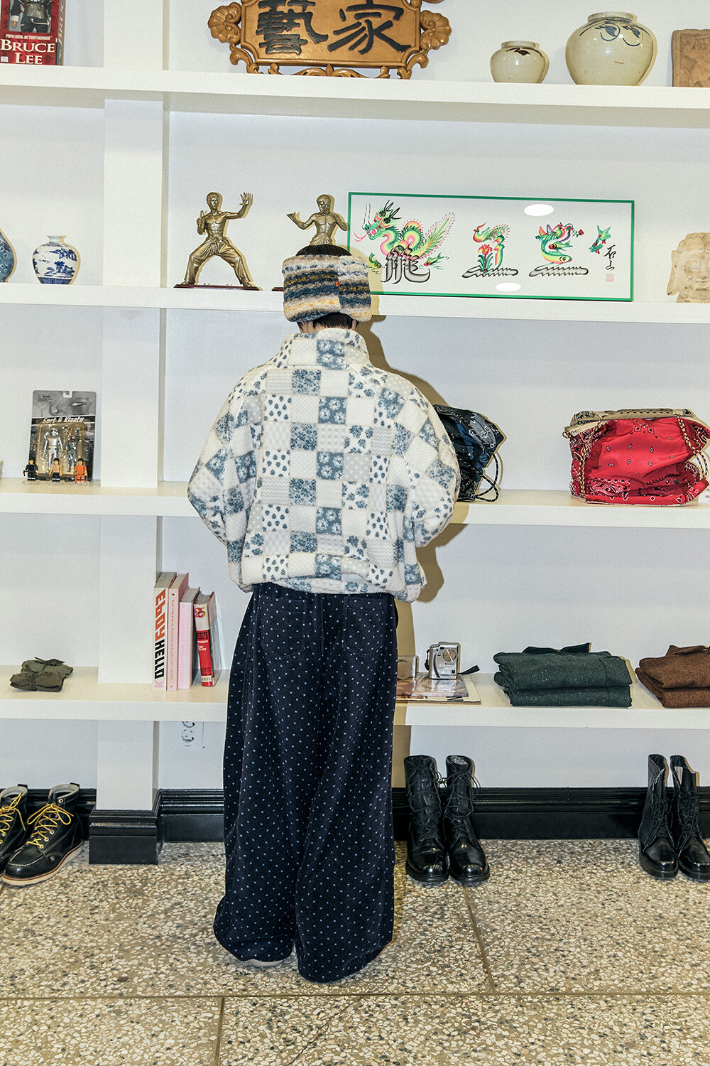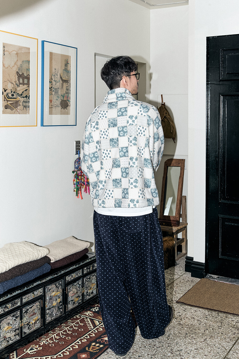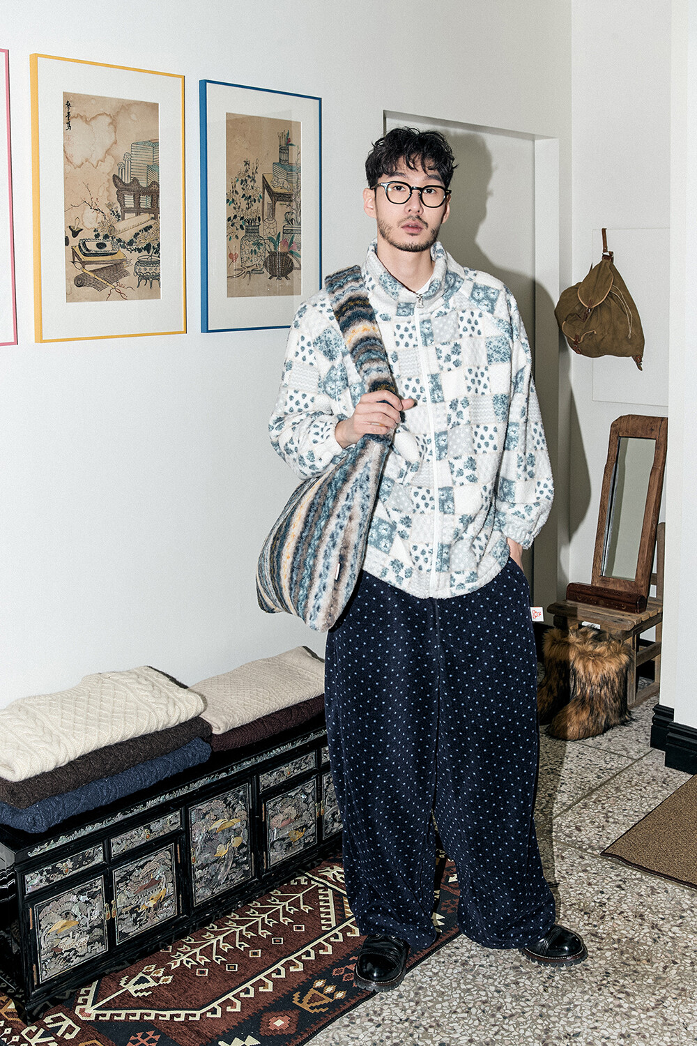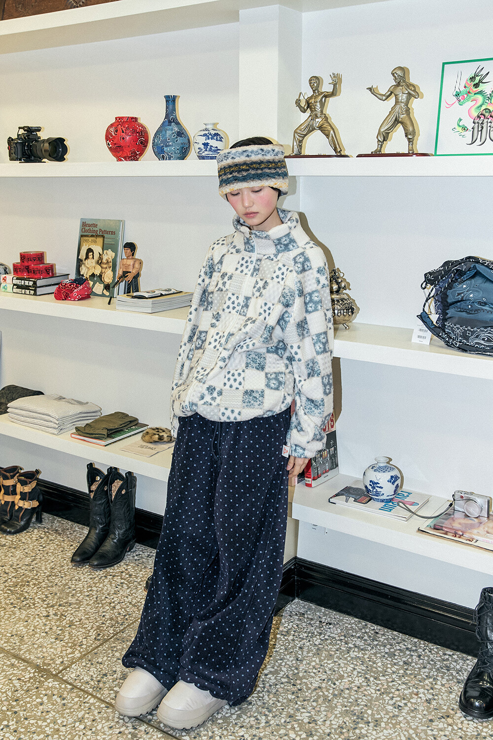 DETAILS *PATTERN FLEECE ZIP-UP-BL