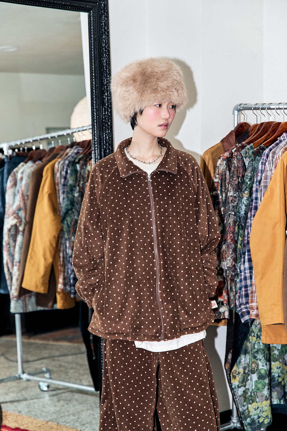 DETAILS *PATTERN FLEECE WIDE SWEAT PANTS-BR