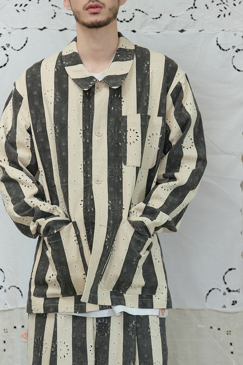 • BRAND: GORT®(고트) • PRODUCT NAME: STRIPE LACE WORK JACKET-CH • CODE: G81102_CH *MADE IN KOREA