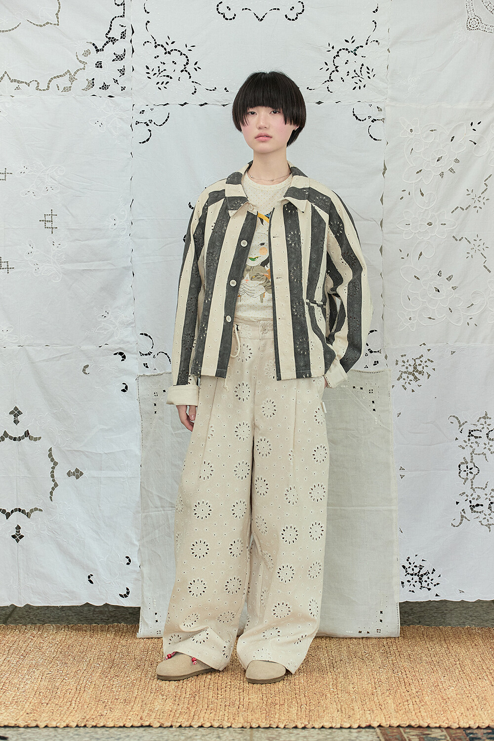• DESCRIPTION: -INSPIRED BY FRENCH 50'S VINTAGE RAILWAY WORK JACKET -COTTON LACE FABRIC • MATERIALS: COTTON 100% • COLOR: CHARCOAL *사진은 실제 제품 색상과 약간의 차이가 있을 수 있습니다.