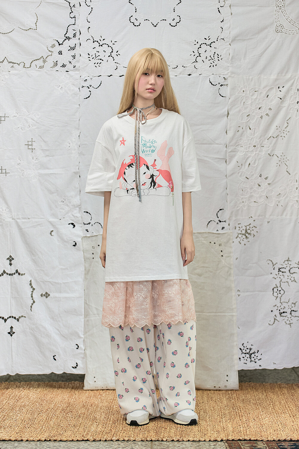 • MEASUREMENT: W/M ONE SIZE CHEST(가슴): 60cm / SHOULDER(어깨): 56cm SLEEVES(소매): 24cm / TOTAL LENGTH(총장): 78cm *사이즈 치수는 측정 방법과 위치에 따라 약간의 오차가 발생할 수 있습니다.
